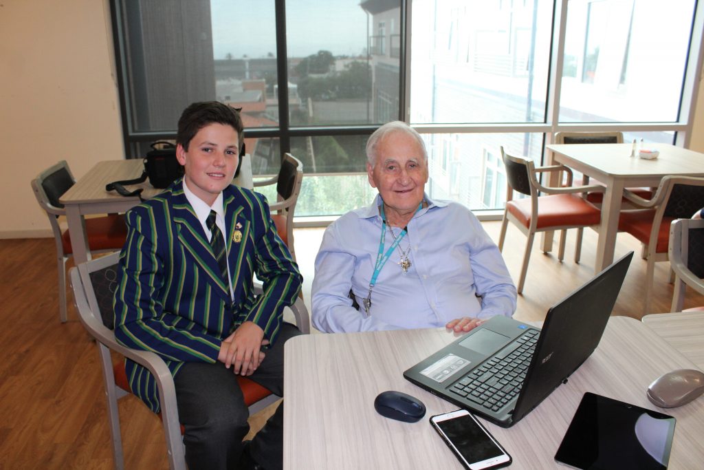 As part of an ongoing intergenerational program, students from St Kevin’s College visit the aged care home once a month to show residents tips and tricks for using computers, iPads, mobile phones and all the other latest gadgets.